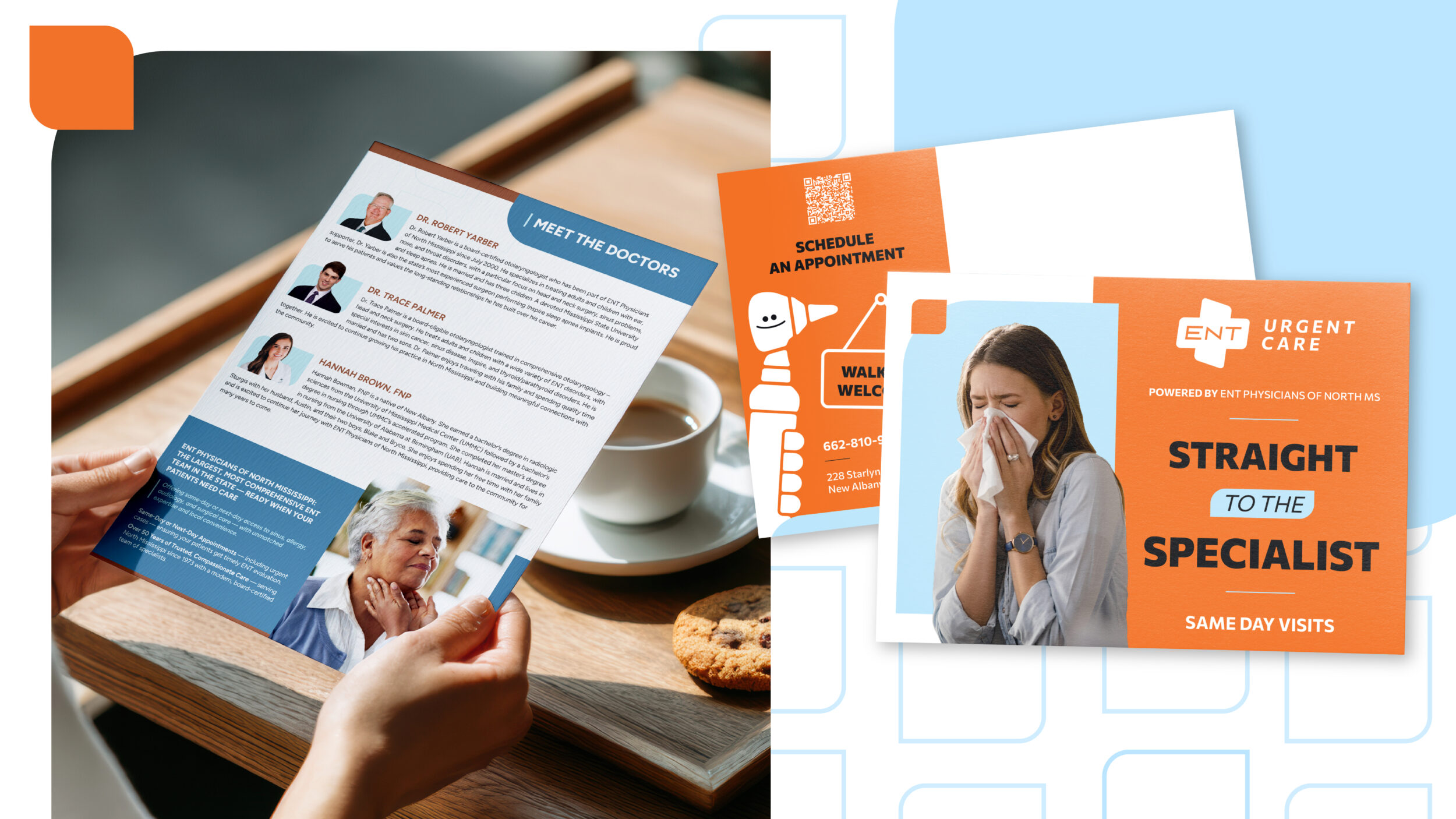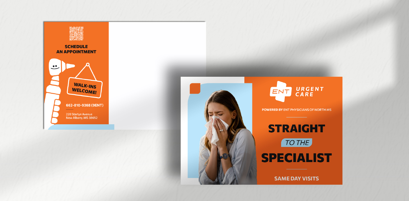 ENT Physicians of North Mississippi needed to promote new clinics and same-day appointments to a wide audience—including patients and referring physicians—while keeping branding consistent across two partnering brands.